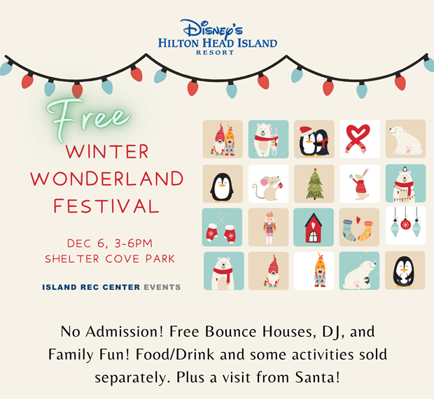 Island Rec Center Winter Wonderland When Dec 6th, 2025 3:00pm - 6:00pm Where 39 Shelter Cove LnHilton Head IslandSouth Carolina29928 CLICK HERE for more info.