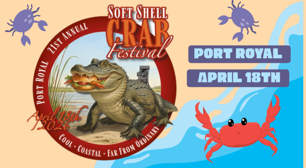 The Town of Port Royal is excited to announce the 21st Annual Soft-Shell Crab Festival, April 18, 2026, in beautiful Port Royal. This beloved Lowcountry tradition will feature a full day of live entertainment, mouthwatering cuisine, and family-friendly activities, making it a must-attend event for residents and visitors alike.