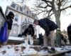 Authorities knocked on doors Monday searching for any video there might be of the Brown University gunman, who could be seen in grainy footage walking away from the weekend attack that killed two students and wounded nine others.